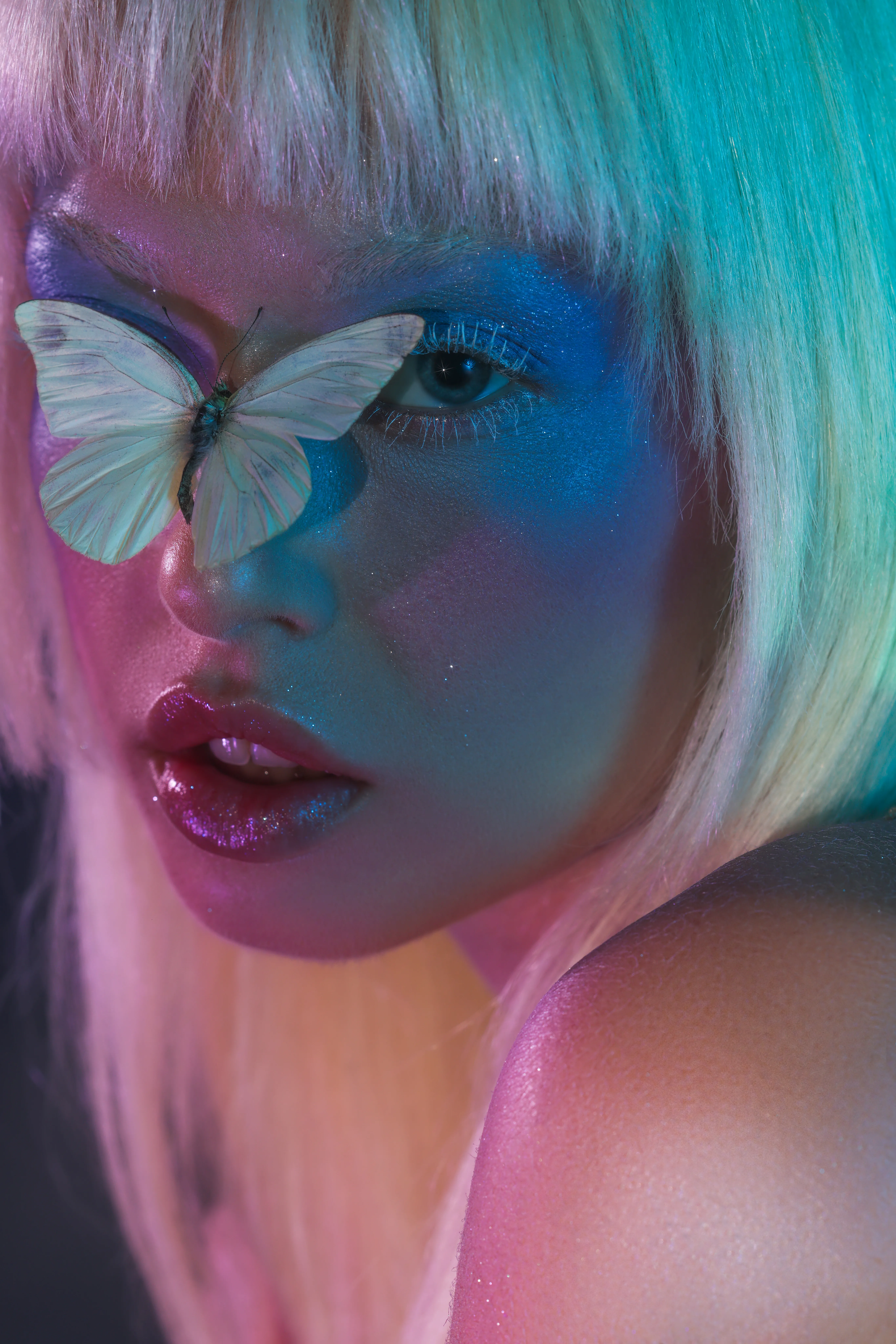Makeup that goes beyond a commercial look. Body paint and color can take you into a visual world and help tell a story.